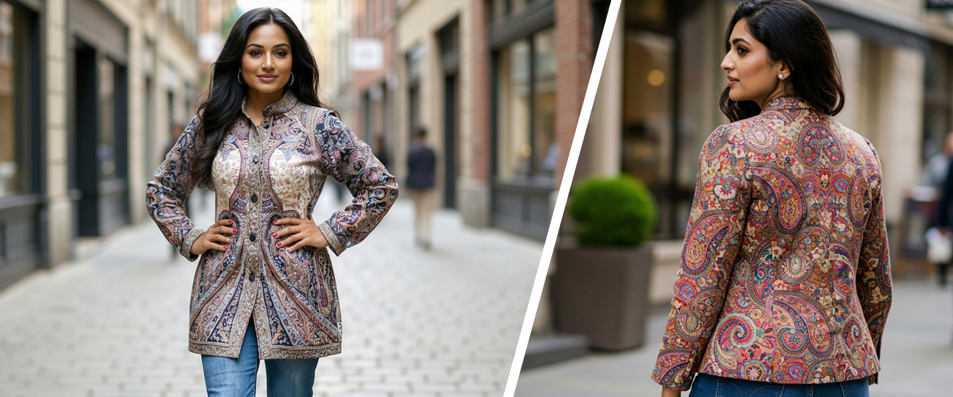 Explore our Artisan Jackets in long, short, and cape styles. Thoughtfully crafted for fusion fashion and intricate paisley detailing, each piece reflects timeless craftsmanship with a modern edge.